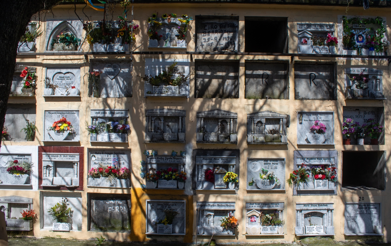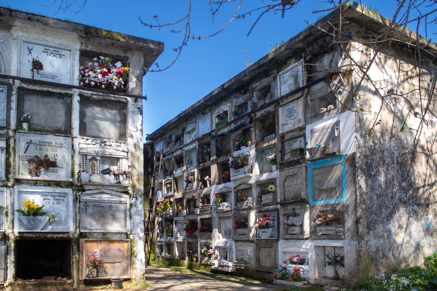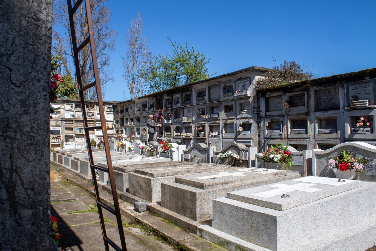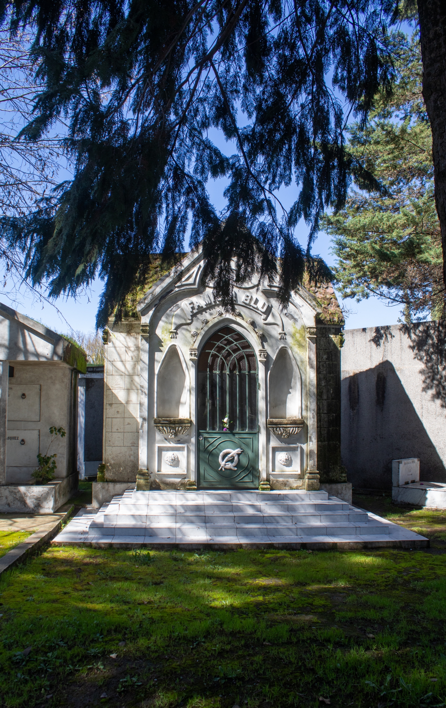 In its interior, the gray and white colors of the tombs, niches, mausoleums, and marble sculptures that can be found around the corridors and vegetation areas are remarkably predominant. Some of the trees that can be observed in the enclosure are pines, oaks, lindens, firs, palms, araucarias, and cypresses, among others.
